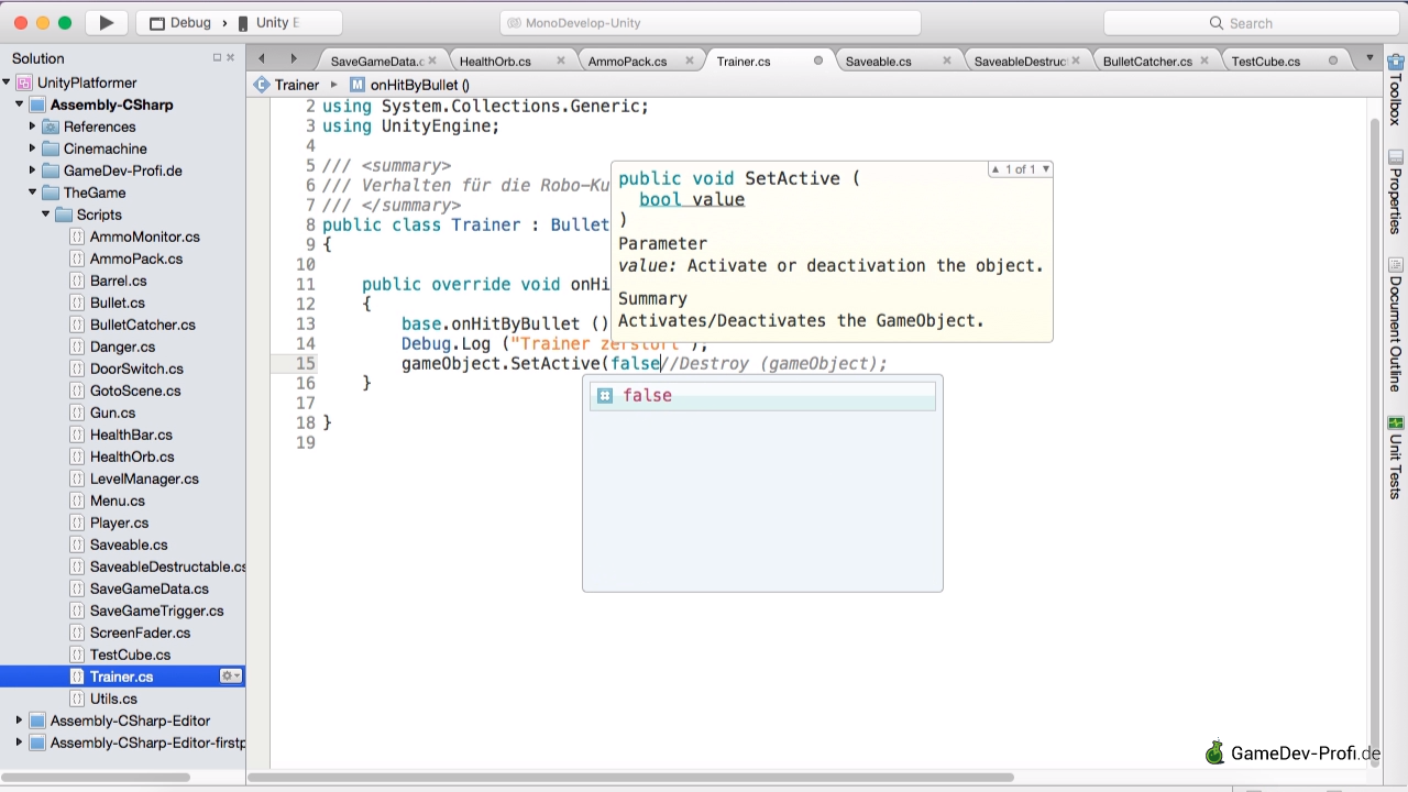 Die hier gezeigten Lektionen sind eine Auswahl von Inhalten aus mehreren verschiedenen kostenpflichtigen Kursen. Um alle Inhalte zu sehen, müssen mehrere Kurse gekauft werden. Änderungen und Aktualisierungen der Kursinhalte werden auf dieser Seite möglicherweise nicht oder nicht sofort dargestellt. Die kostenpflichtigen Udemy-Kurse enthalten neben den Videos auch Übungen, Textartikel, weitere Materialien, sowie ein Support-Forum für Fragen. Vereinzelt kann eine Lektion im mehreren Kursen gleichzeitig enthalten sein. Wenn etwas unklar ist, stelle Deine Frage per E-Mail an rene@gamedev-profi.de .