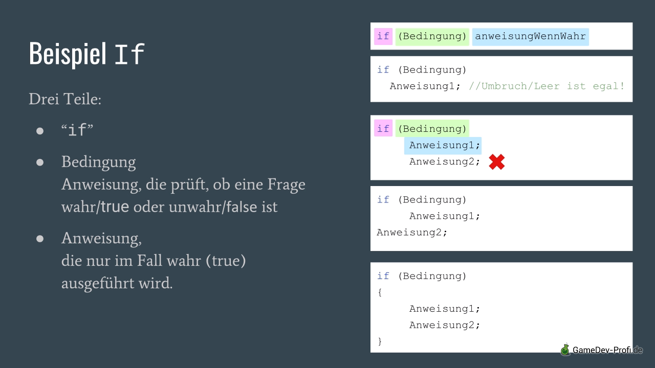 Code besteht aus einer Folge einzelner Anweisungen, die sich jedoch durch Klammerung gruppieren lassen.