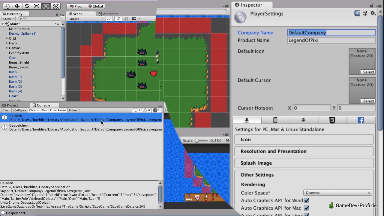 Der Savegame-Pfad wird u.a. auf Grundlage der Projekteinstellungen erstellt. Die voreingestellte "DefaultCompany" können wir durch Eingabe unseres eigenen Namens entsprechend ändern.