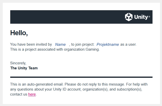 Wenn Du zu einem Unity-Projekt eingeladen wirst, bekommst Du zwar eine Info-E-Mail, doch leider ohne Infos zur Annahme der Einladung. Gehe in Unity-Hub, wo Du das Projekt über „Add from repository“ direkt runterladen und öffnen kannst.